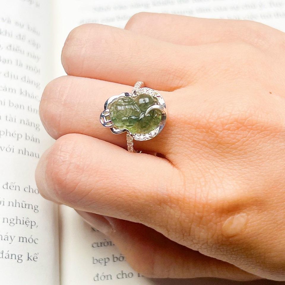 - Nhẫn bạc tỳ hưu thạch anh tóc xanh có linh lực rất mạnh, dùng linh lực để hóa giải sát khí, xua đuổi những điều không may mắn, kích hoạt tài lộc vào cửa hàng, cửa hiệu, buôn may bán đắt.